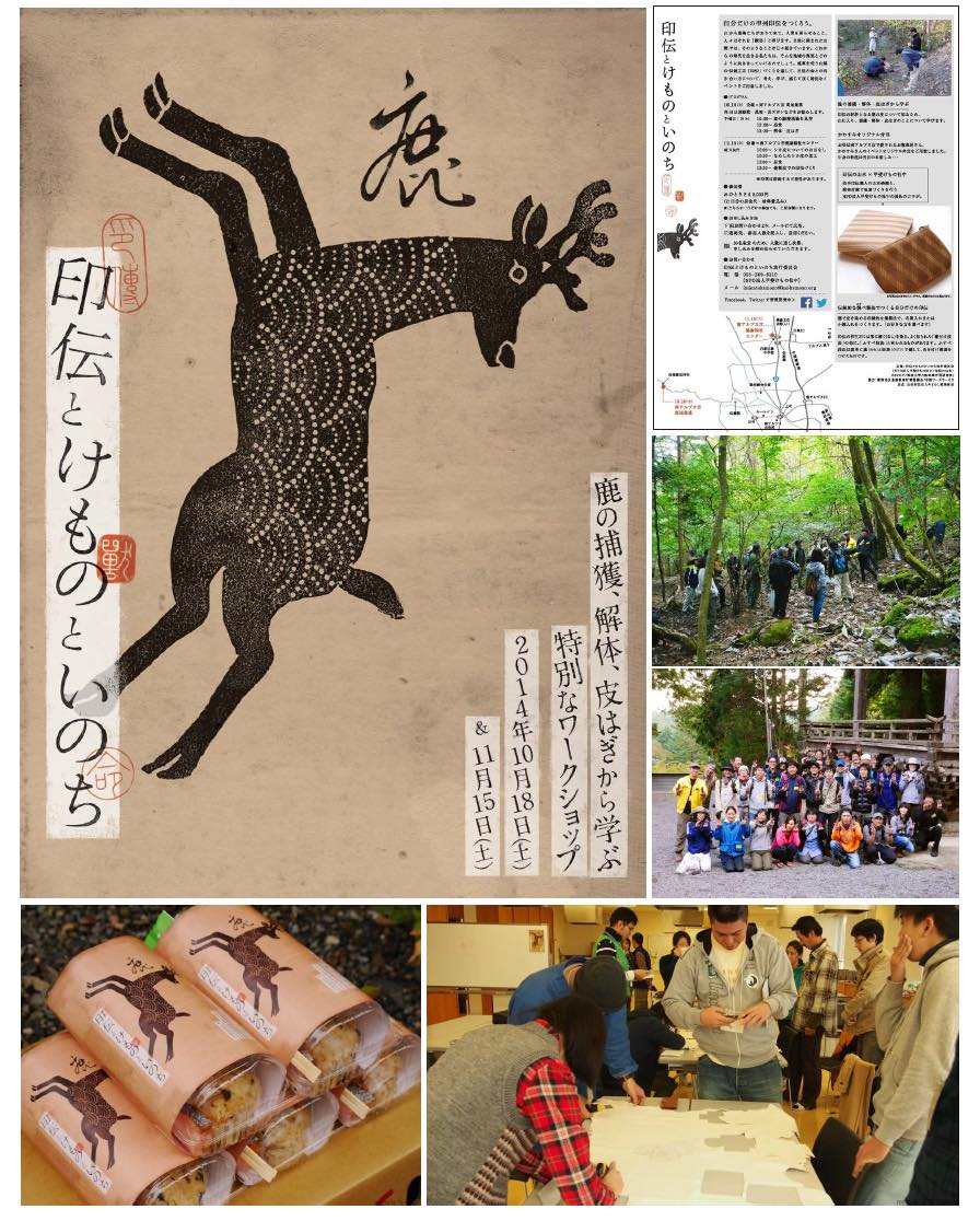 獣害×印伝のコラボイベントの企画実施。山梨の産品として根強い人気を誇る伝統工芸品「印伝」。鹿革に漆で模様付けするという産業の背景には、様々な課題が。また、一方で地域には獣害という社会課題が存在しており、そのふたつを掛け合わせたイベントを開催することで、気付きや意識付けのきっかけを促すイベントを開催。