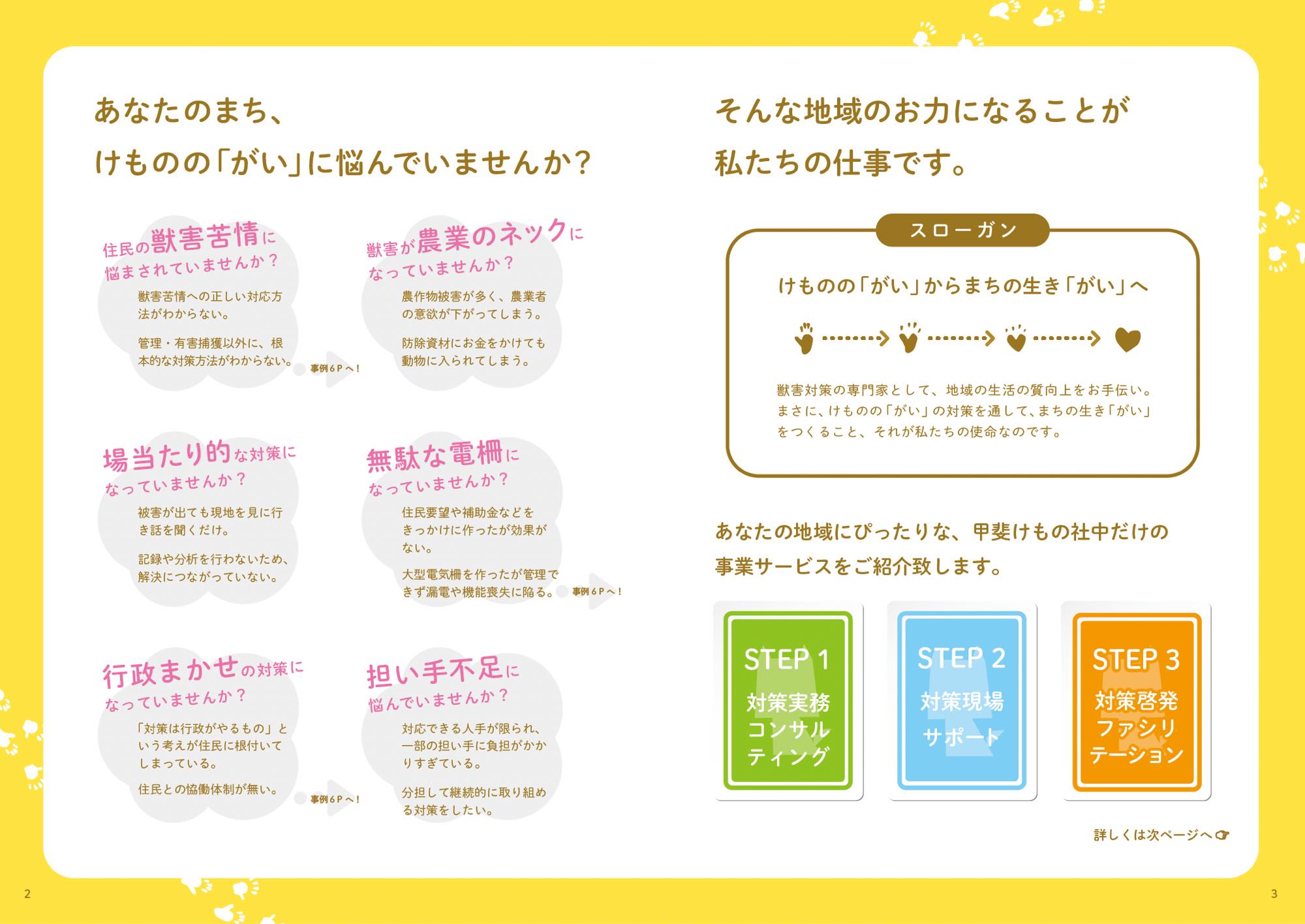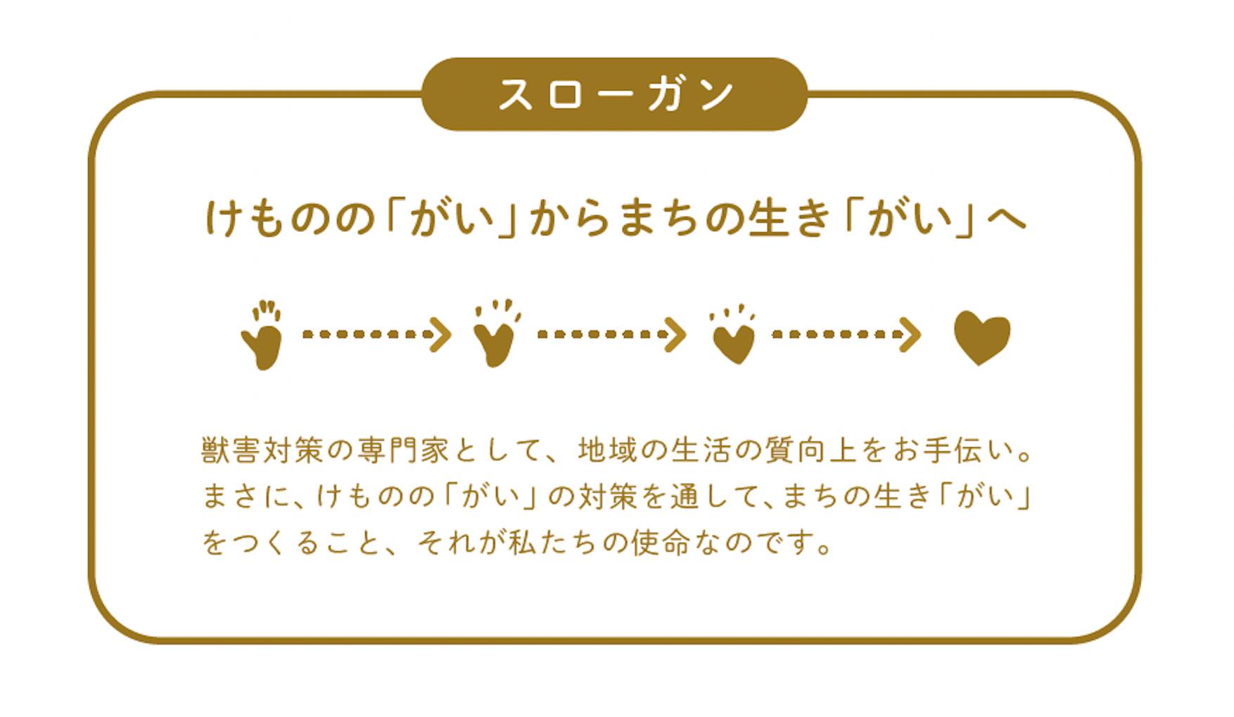 甲斐けもの社中と沢山の対話などを重ねる中で、取り組みや想いをどのような言葉で表現するかを徹底的に考えた。獣害対策を通して自分たちの生活や街のことを見つめることで豊かな「生きがい」を見つけていくということをスローガンに表現した。