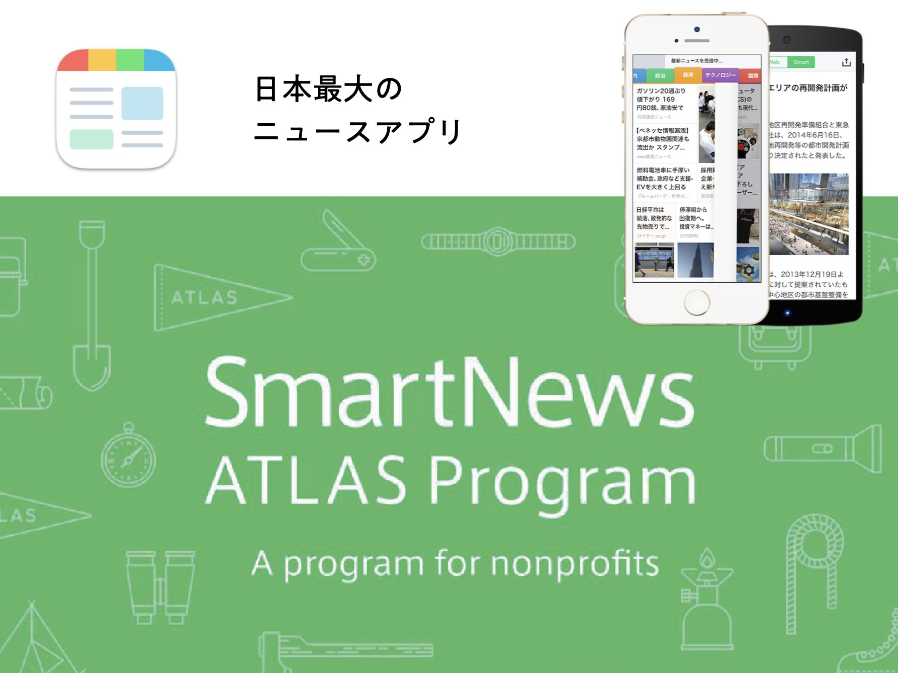 日本最大のニュースアプリ SmartNewsのNPO支援プログラム「ATLAS Program」に全国123団体の中から注目の10団体として採択される。