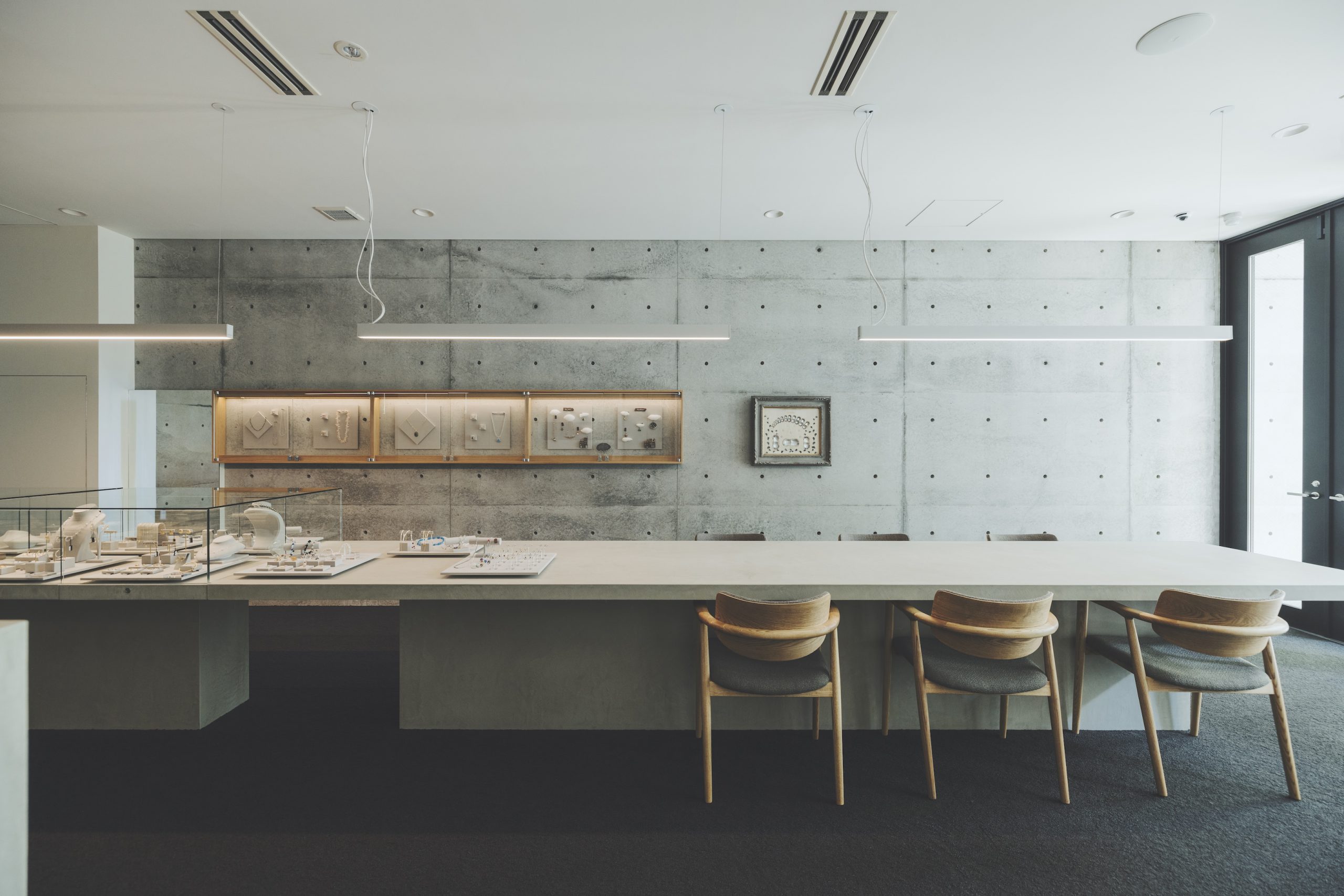 今後の会社のあり方、それを体現する店舗名等のコンセプト立案を行った後、VIの制作、建築空間からサインや什器デザイン、cafeの立ち上げやショップカード制作等へのデザイン展開までの一貫した支援を行った。